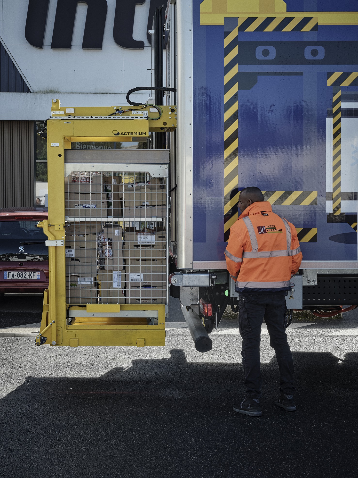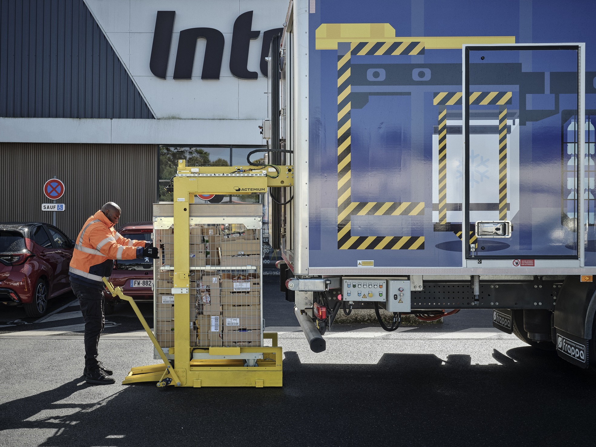 Tout d’abord, les opérateurs et conducteurs-livreurs voient leurs conditions de travail et leur sécurité considérablement améliorées. Le filmage des palettes devient superflu, car la marchandise est directement chargée dans des conteneurs et le conducteur-livreur n’a plus à effectuer les tâches fastidieuses d’arrimage et de sécurisation des chargements. À l’arrivée au point de livraison, les conteneurs dédiés à chaque point de vente sont automatiquement descendus au niveau de la chaussée grâce à un ascenseur, éliminant ainsi montées et descentes fréquentes à l’arrière du camion et l’utilisation du transpalette. Les risques d’accident liés à la manipulation des palettes et du hayon sont éliminés. Autant d’améliorations qui réhaussent l’attractivité du métier de conducteur.