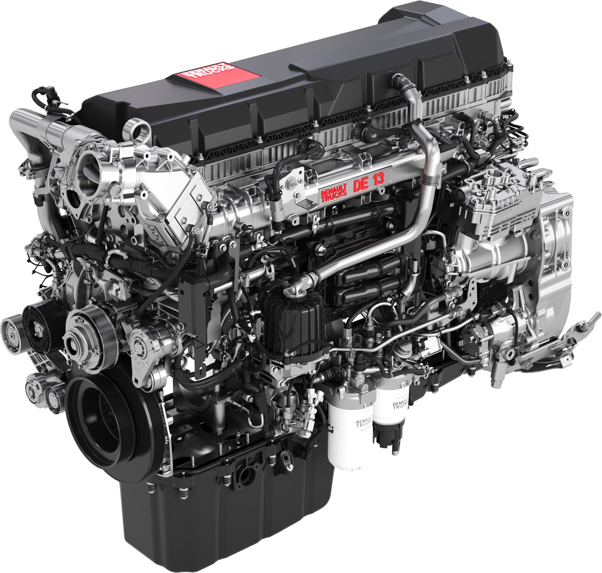 Pour un meilleur rendement, Renault Trucks a également travaillé à la réduction des pertes par frottement : les bielles, pistons et vilebrequin ont été repensés et la gestion des gaz de carter a été optimisée. Un nouveau turbocompresseur haute performance à roulement à billes, au temps de réponse amélioré et une pompe à huile à débit variable associée à une huile à faible viscosité, ont également été développés.